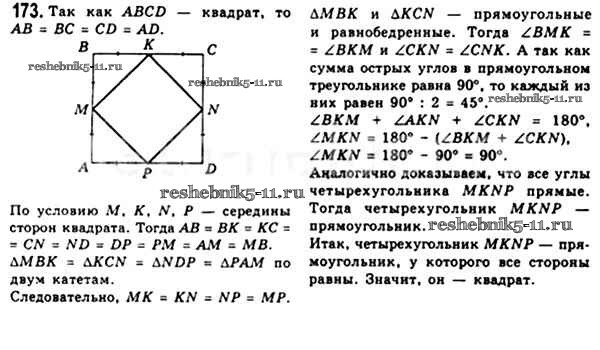 Готовая домашняя работа с ответами по Геометрии за 8 класс Мерзляк, Полонский, Якир Учебник Алгоритм успеха Вентана-граф 2015 ФГОС - § 6. Квадрат 173