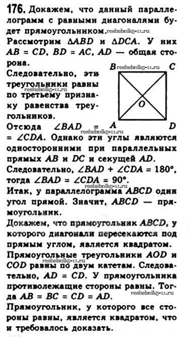 Готовая домашняя работа с ответами по Геометрии за 8 класс Мерзляк, Полонский, Якир Учебник Алгоритм успеха Вентана-граф 2015 ФГОС - § 6. Квадрат 176