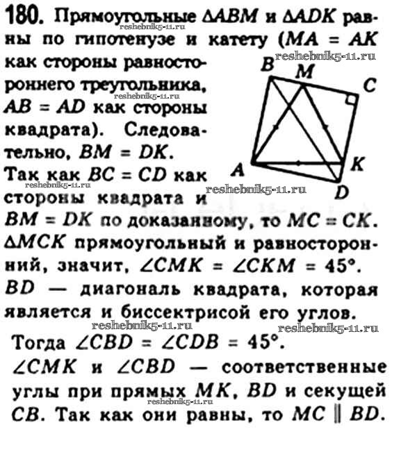 Готовая домашняя работа с ответами по Геометрии за 8 класс Мерзляк, Полонский, Якир Учебник Алгоритм успеха Вентана-граф 2015 ФГОС - § 6. Квадрат 180