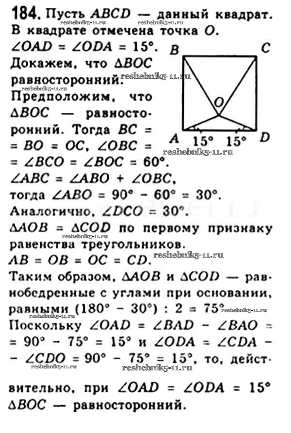 Готовая домашняя работа с ответами по Геометрии за 8 класс Мерзляк, Полонский, Якир Учебник Алгоритм успеха Вентана-граф 2015 ФГОС - § 6. Квадрат 184