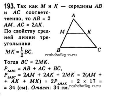 Готовая домашняя работа с ответами по Геометрии за 8 класс Мерзляк, Полонский, Якир Учебник Алгоритм успеха Вентана-граф 2015 ФГОС - § 7. Средняя линия треугольника 193
