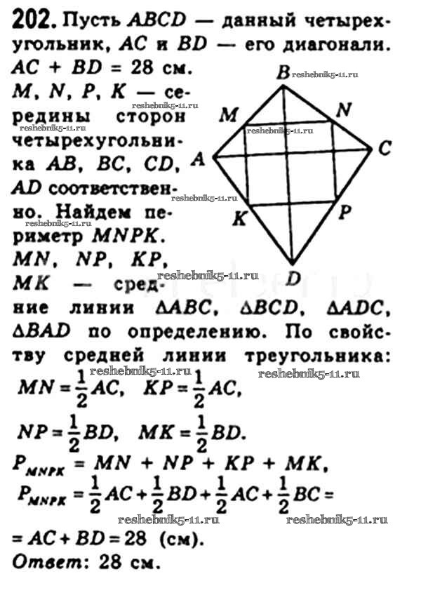 Готовая домашняя работа с ответами по Геометрии за 8 класс Мерзляк, Полонский, Якир Учебник Алгоритм успеха Вентана-граф 2015 ФГОС - § 7. Средняя линия треугольника 202
