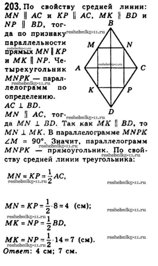 Готовая домашняя работа с ответами по Геометрии за 8 класс Мерзляк, Полонский, Якир Учебник Алгоритм успеха Вентана-граф 2015 ФГОС - § 7. Средняя линия треугольника 203