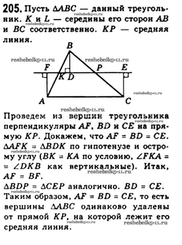 Готовая домашняя работа с ответами по Геометрии за 8 класс Мерзляк, Полонский, Якир Учебник Алгоритм успеха Вентана-граф 2015 ФГОС - § 7. Средняя линия треугольника 205