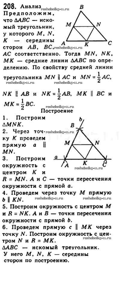 Готовая домашняя работа с ответами по Геометрии за 8 класс Мерзляк, Полонский, Якир Учебник Алгоритм успеха Вентана-граф 2015 ФГОС - § 7. Средняя линия треугольника 208