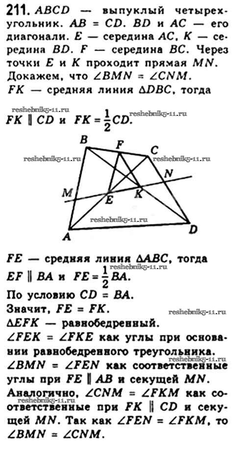 Готовая домашняя работа с ответами по Геометрии за 8 класс Мерзляк, Полонский, Якир Учебник Алгоритм успеха Вентана-граф 2015 ФГОС - § 7. Средняя линия треугольника 211