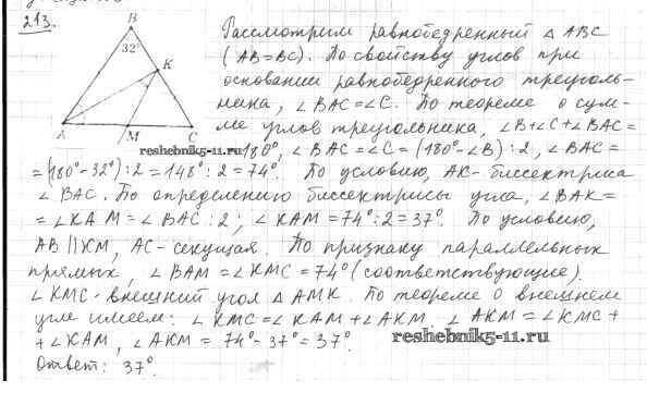 Готовая домашняя работа с ответами по Геометрии за 8 класс Мерзляк, Полонский, Якир Учебник Алгоритм успеха Вентана-граф 2015 ФГОС - § 7. Средняя линия треугольника 213