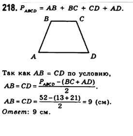 Готовая домашняя работа с ответами по Геометрии за 8 класс Мерзляк, Полонский, Якир Учебник Алгоритм успеха Вентана-граф 2015 ФГОС - § 8. Трапеция 218