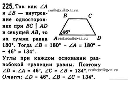 Готовая домашняя работа с ответами по Геометрии за 8 класс Мерзляк, Полонский, Якир Учебник Алгоритм успеха Вентана-граф 2015 ФГОС - § 8. Трапеция 225