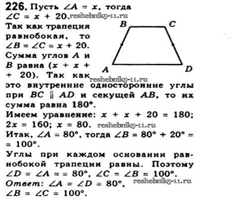 Готовая домашняя работа с ответами по Геометрии за 8 класс Мерзляк, Полонский, Якир Учебник Алгоритм успеха Вентана-граф 2015 ФГОС - § 8. Трапеция 226