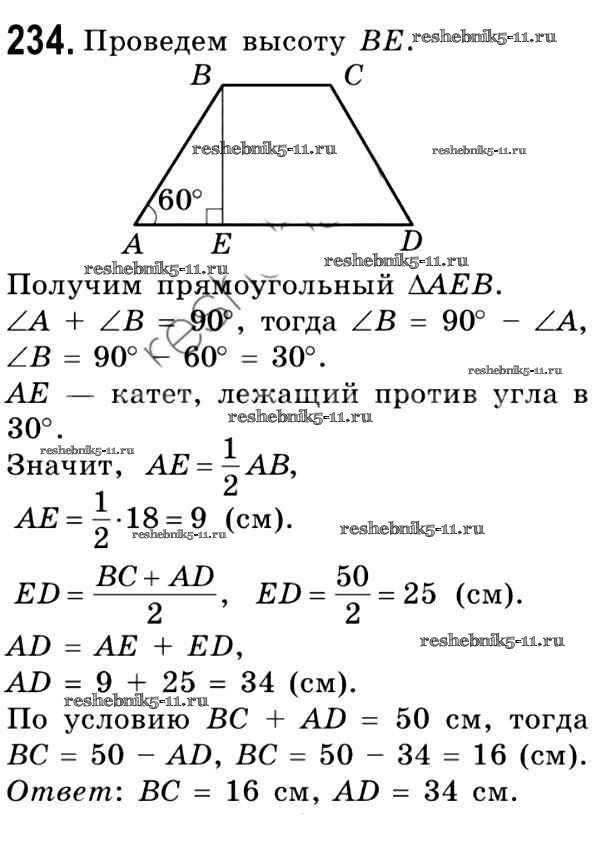 Готовая домашняя работа с ответами по Геометрии за 8 класс Мерзляк, Полонский, Якир Учебник Алгоритм успеха Вентана-граф 2015 ФГОС - § 8. Трапеция 234