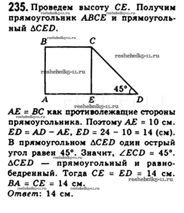 Готовая домашняя работа с ответами по Геометрии за 8 класс Мерзляк, Полонский, Якир Учебник Алгоритм успеха Вентана-граф 2015 ФГОС - § 8. Трапеция 235