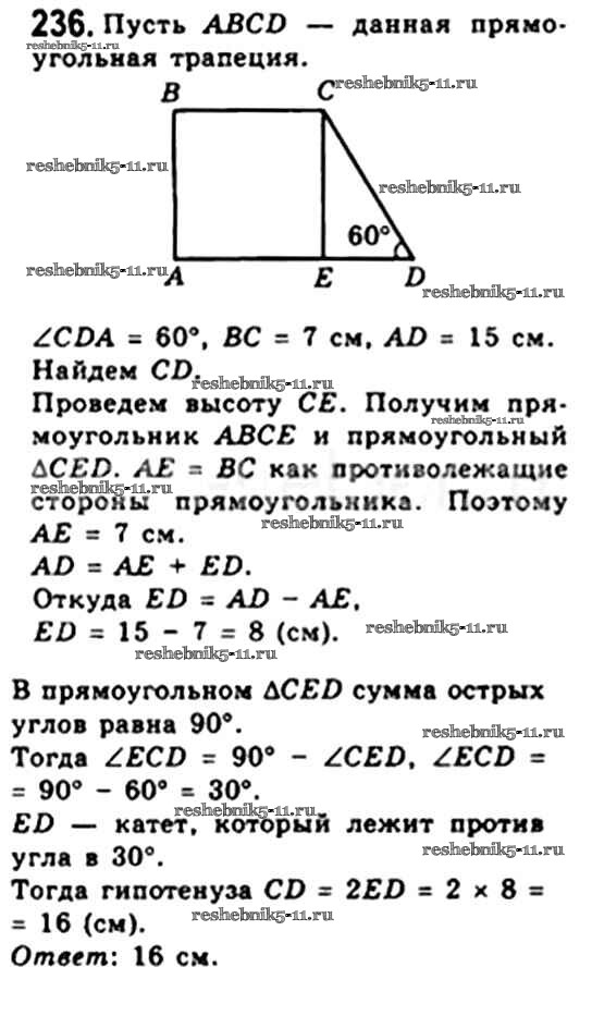 Готовая домашняя работа с ответами по Геометрии за 8 класс Мерзляк, Полонский, Якир Учебник Алгоритм успеха Вентана-граф 2015 ФГОС - § 8. Трапеция 236