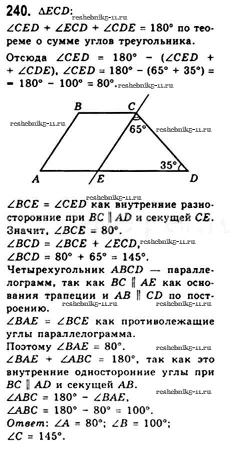 Готовая домашняя работа с ответами по Геометрии за 8 класс Мерзляк, Полонский, Якир Учебник Алгоритм успеха Вентана-граф 2015 ФГОС - § 8. Трапеция 240