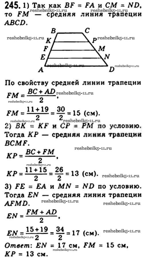 Готовая домашняя работа с ответами по Геометрии за 8 класс Мерзляк, Полонский, Якир Учебник Алгоритм успеха Вентана-граф 2015 ФГОС - § 8. Трапеция 245