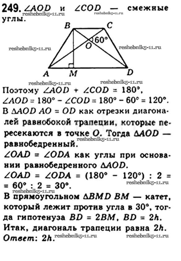 Готовая домашняя работа с ответами по Геометрии за 8 класс Мерзляк, Полонский, Якир Учебник Алгоритм успеха Вентана-граф 2015 ФГОС - § 8. Трапеция 249