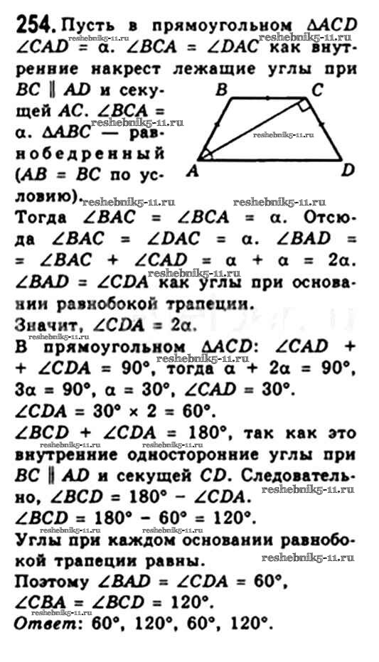 Готовая домашняя работа с ответами по Геометрии за 8 класс Мерзляк, Полонский, Якир Учебник Алгоритм успеха Вентана-граф 2015 ФГОС - § 8. Трапеция 254
