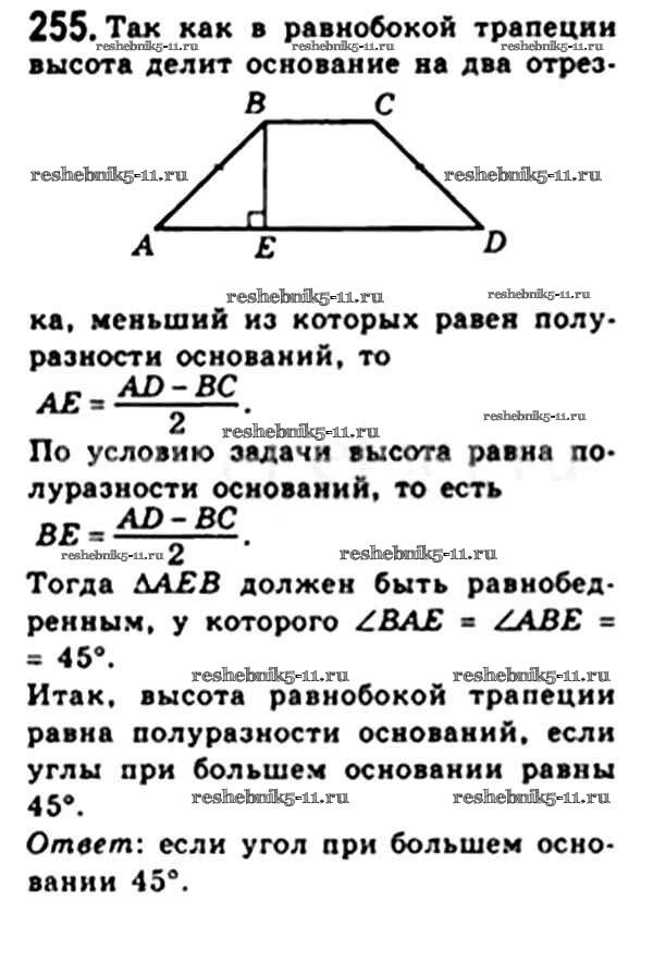 Готовая домашняя работа с ответами по Геометрии за 8 класс Мерзляк, Полонский, Якир Учебник Алгоритм успеха Вентана-граф 2015 ФГОС - § 8. Трапеция 255