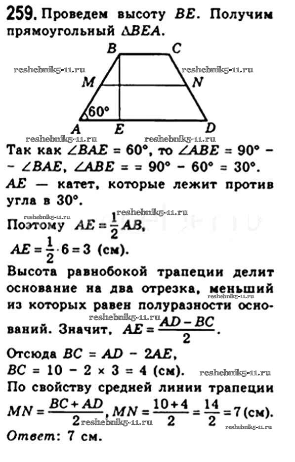 Готовая домашняя работа с ответами по Геометрии за 8 класс Мерзляк, Полонский, Якир Учебник Алгоритм успеха Вентана-граф 2015 ФГОС - § 8. Трапеция 259