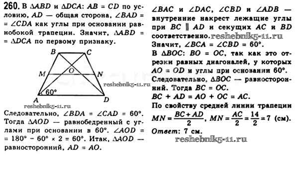 Готовая домашняя работа с ответами по Геометрии за 8 класс Мерзляк, Полонский, Якир Учебник Алгоритм успеха Вентана-граф 2015 ФГОС - § 8. Трапеция 260
