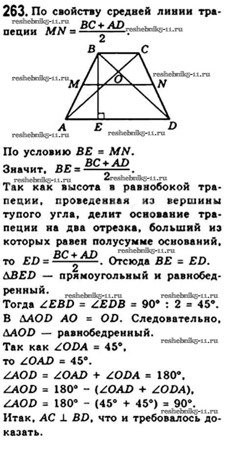 Готовая домашняя работа с ответами по Геометрии за 8 класс Мерзляк, Полонский, Якир Учебник Алгоритм успеха Вентана-граф 2015 ФГОС - § 8. Трапеция 263
