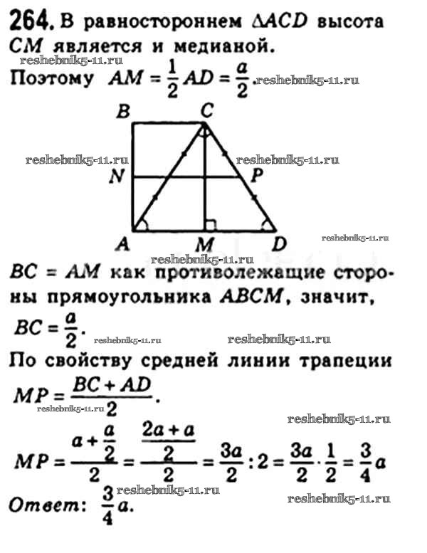 Готовая домашняя работа с ответами по Геометрии за 8 класс Мерзляк, Полонский, Якир Учебник Алгоритм успеха Вентана-граф 2015 ФГОС - § 8. Трапеция 264