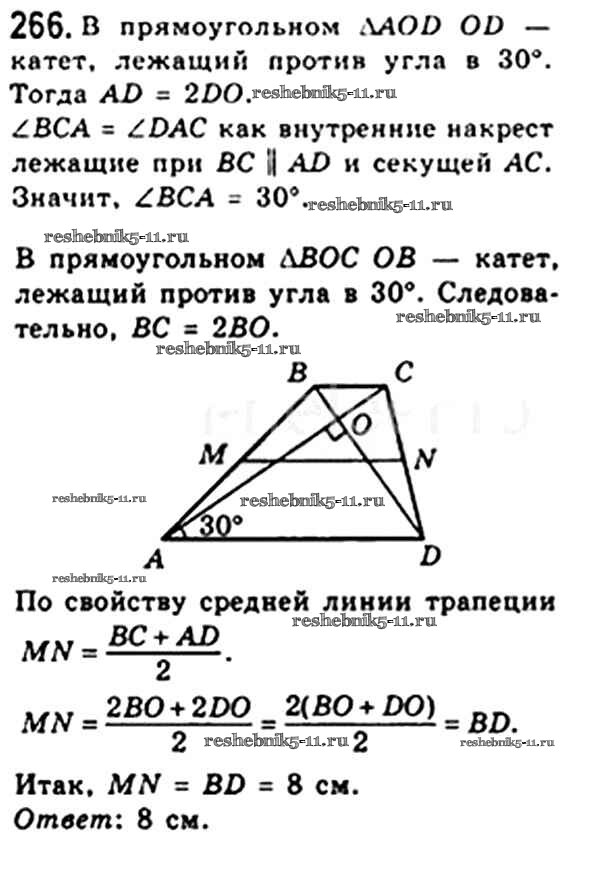 Готовая домашняя работа с ответами по Геометрии за 8 класс Мерзляк, Полонский, Якир Учебник Алгоритм успеха Вентана-граф 2015 ФГОС - § 8. Трапеция 266