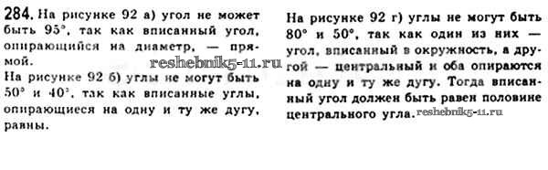 Готовая домашняя работа с ответами по Геометрии за 8 класс Мерзляк, Полонский, Якир Учебник Алгоритм успеха Вентана-граф 2015 ФГОС - § 9. Центральные и вписанные углы 284