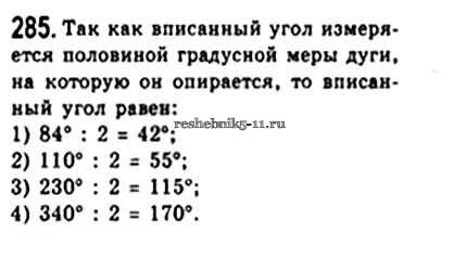 Готовая домашняя работа с ответами по Геометрии за 8 класс Мерзляк, Полонский, Якир Учебник Алгоритм успеха Вентана-граф 2015 ФГОС - § 9. Центральные и вписанные углы 285