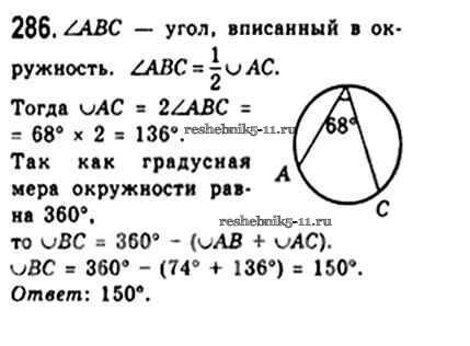 Готовая домашняя работа с ответами по Геометрии за 8 класс Мерзляк, Полонский, Якир Учебник Алгоритм успеха Вентана-граф 2015 ФГОС - § 9. Центральные и вписанные углы 286
