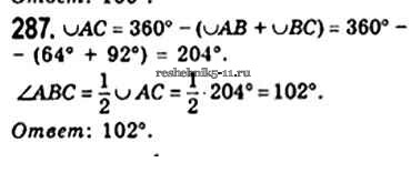 Готовая домашняя работа с ответами по Геометрии за 8 класс Мерзляк, Полонский, Якир Учебник Алгоритм успеха Вентана-граф 2015 ФГОС - § 9. Центральные и вписанные углы 287