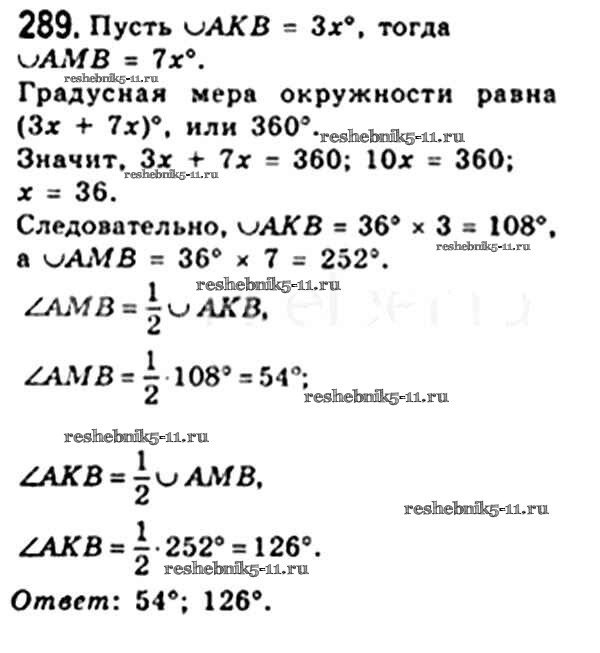 Готовая домашняя работа с ответами по Геометрии за 8 класс Мерзляк, Полонский, Якир Учебник Алгоритм успеха Вентана-граф 2015 ФГОС - § 9. Центральные и вписанные углы 289