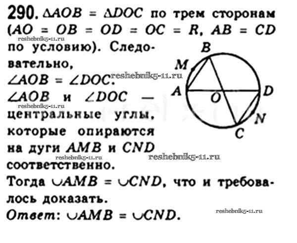 Готовая домашняя работа с ответами по Геометрии за 8 класс Мерзляк, Полонский, Якир Учебник Алгоритм успеха Вентана-граф 2015 ФГОС - § 9. Центральные и вписанные углы 290