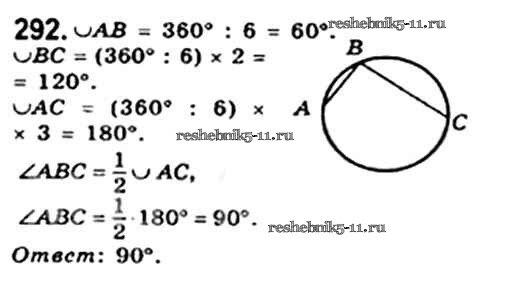 Готовая домашняя работа с ответами по Геометрии за 8 класс Мерзляк, Полонский, Якир Учебник Алгоритм успеха Вентана-граф 2015 ФГОС - § 9. Центральные и вписанные углы 292