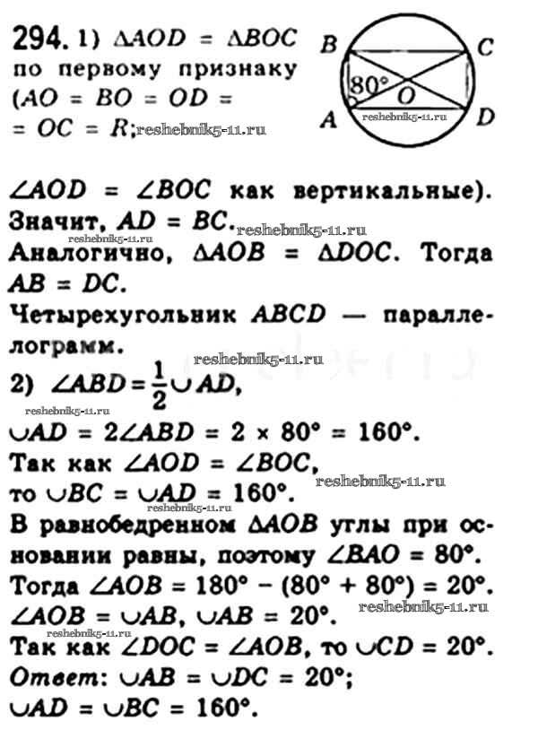 Готовая домашняя работа с ответами по Геометрии за 8 класс Мерзляк, Полонский, Якир Учебник Алгоритм успеха Вентана-граф 2015 ФГОС - § 9. Центральные и вписанные углы 294