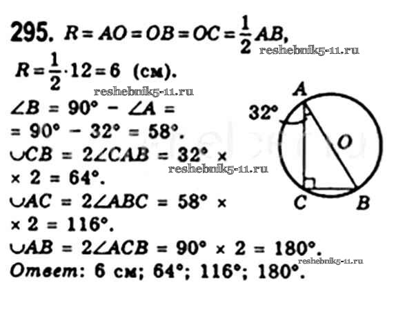 Готовая домашняя работа с ответами по Геометрии за 8 класс Мерзляк, Полонский, Якир Учебник Алгоритм успеха Вентана-граф 2015 ФГОС - § 9. Центральные и вписанные углы 295