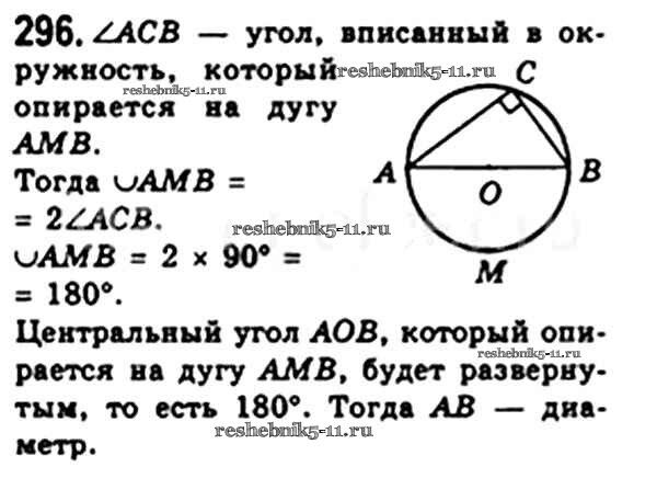 Готовая домашняя работа с ответами по Геометрии за 8 класс Мерзляк, Полонский, Якир Учебник Алгоритм успеха Вентана-граф 2015 ФГОС - § 9. Центральные и вписанные углы 296