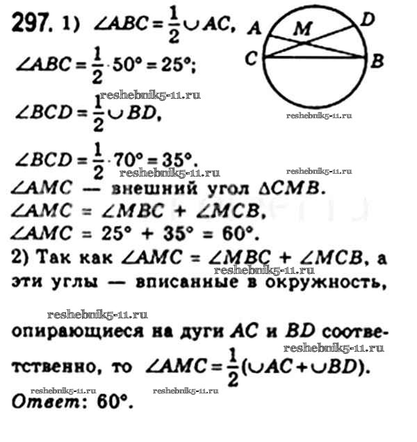 Готовая домашняя работа с ответами по Геометрии за 8 класс Мерзляк, Полонский, Якир Учебник Алгоритм успеха Вентана-граф 2015 ФГОС - § 9. Центральные и вписанные углы 297