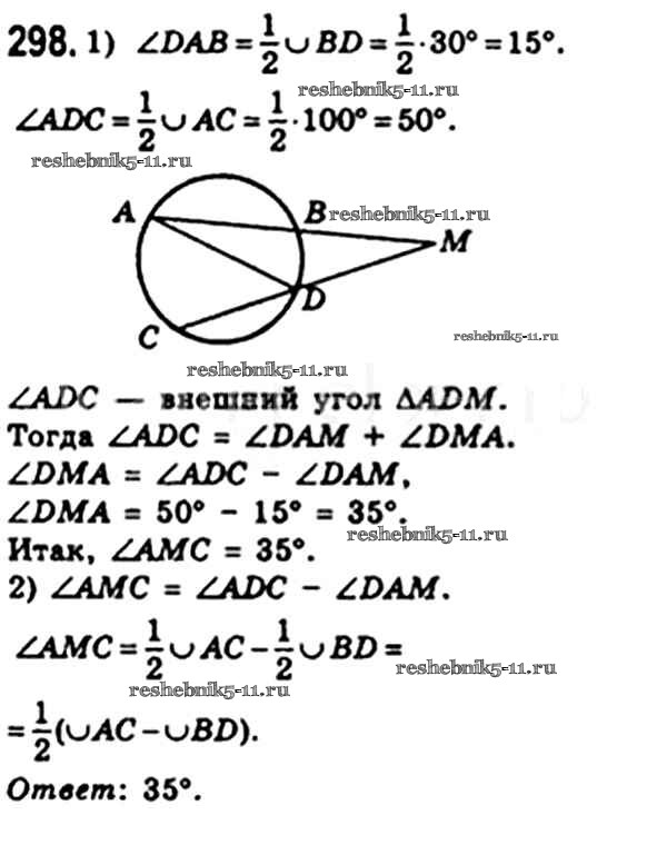Готовая домашняя работа с ответами по Геометрии за 8 класс Мерзляк, Полонский, Якир Учебник Алгоритм успеха Вентана-граф 2015 ФГОС - § 9. Центральные и вписанные углы 298