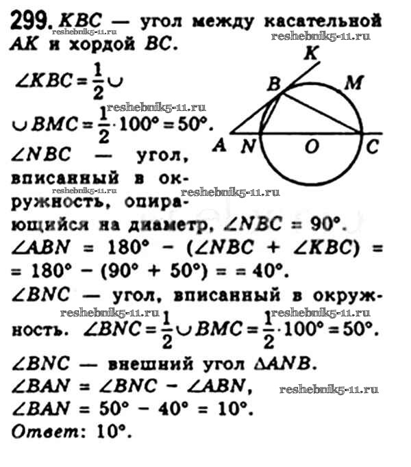 Готовая домашняя работа с ответами по Геометрии за 8 класс Мерзляк, Полонский, Якир Учебник Алгоритм успеха Вентана-граф 2015 ФГОС - § 9. Центральные и вписанные углы 299