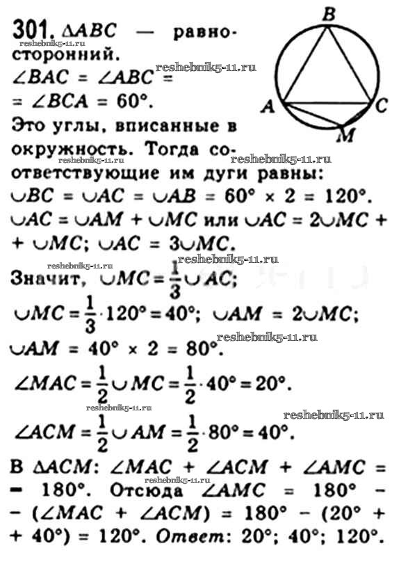 Готовая домашняя работа с ответами по Геометрии за 8 класс Мерзляк, Полонский, Якир Учебник Алгоритм успеха Вентана-граф 2015 ФГОС - § 9. Центральные и вписанные углы 301