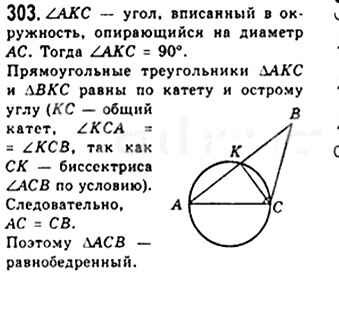 Готовая домашняя работа с ответами по Геометрии за 8 класс Мерзляк, Полонский, Якир Учебник Алгоритм успеха Вентана-граф 2015 ФГОС - § 9. Центральные и вписанные углы 303