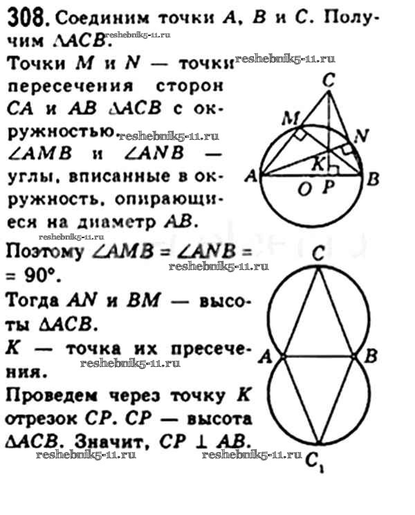 Готовая домашняя работа с ответами по Геометрии за 8 класс Мерзляк, Полонский, Якир Учебник Алгоритм успеха Вентана-граф 2015 ФГОС - § 9. Центральные и вписанные углы 308