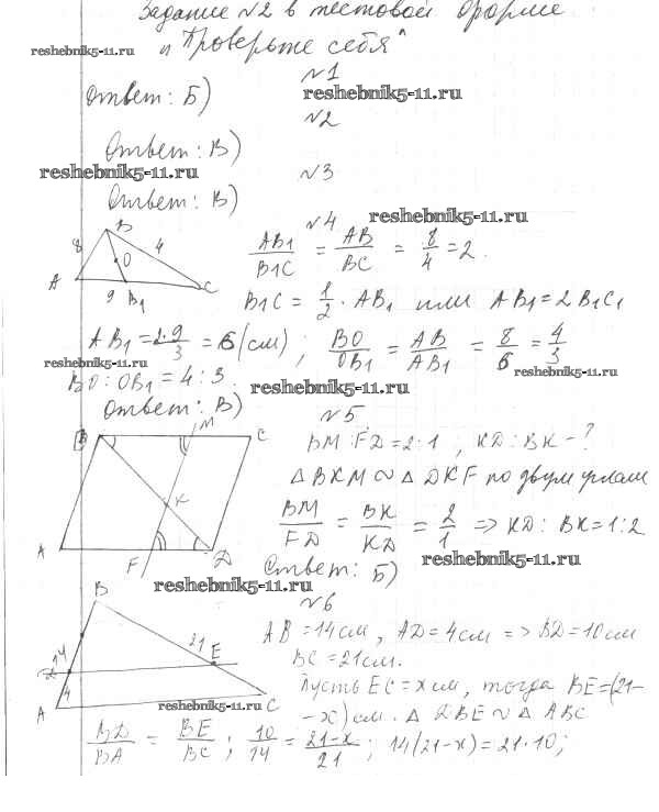 Готовая домашняя работа с ответами по Геометрии за 8 класс Мерзляк, Полонский, Якир Учебник Алгоритм успеха Вентана-граф 2015 ФГОС - Проверь себя №2