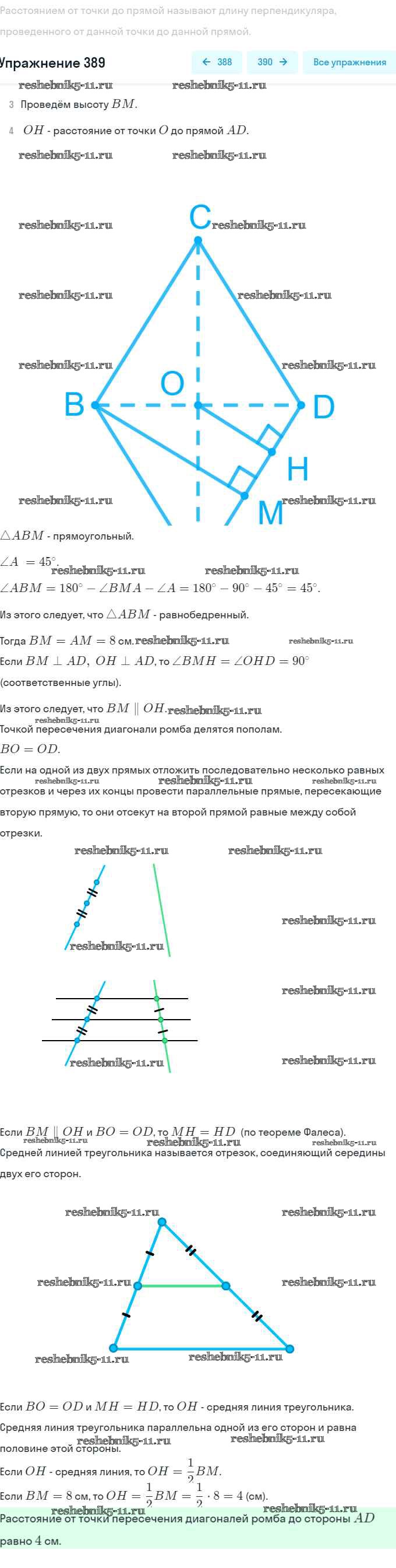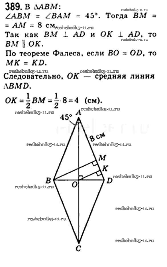 Готовая домашняя работа с ответами по Геометрии за 8 класс Мерзляк, Полонский, Якир Учебник Алгоритм успеха Вентана-граф 2015 ФГОС - § 11. Теорема Фалеса. Теорема о пропорциональных отрезках 389