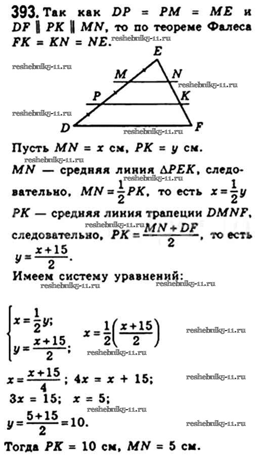 Готовая домашняя работа с ответами по Геометрии за 8 класс Мерзляк, Полонский, Якир Учебник Алгоритм успеха Вентана-граф 2015 ФГОС - § 11. Теорема Фалеса. Теорема о пропорциональных отрезках 393