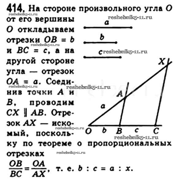 Готовая домашняя работа с ответами по Геометрии за 8 класс Мерзляк, Полонский, Якир Учебник Алгоритм успеха Вентана-граф 2015 ФГОС - § 11. Теорема Фалеса. Теорема о пропорциональных отрезках 414