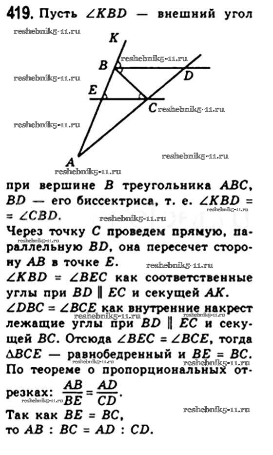 Готовая домашняя работа с ответами по Геометрии за 8 класс Мерзляк, Полонский, Якир Учебник Алгоритм успеха Вентана-граф 2015 ФГОС - § 11. Теорема Фалеса. Теорема о пропорциональных отрезках 419