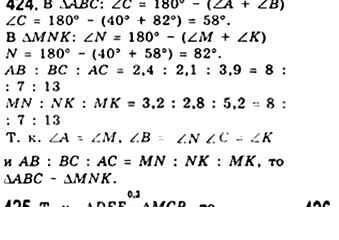 Готовая домашняя работа с ответами по Геометрии за 8 класс Мерзляк, Полонский, Якир Учебник Алгоритм успеха Вентана-граф 2015 ФГОС - § 12. Подобные треугольники. Лемма о подобных треугольниках 424