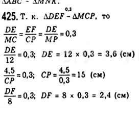 Готовая домашняя работа с ответами по Геометрии за 8 класс Мерзляк, Полонский, Якир Учебник Алгоритм успеха Вентана-граф 2015 ФГОС - § 12. Подобные треугольники. Лемма о подобных треугольниках 425